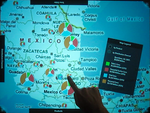 The demand planning prototype was developed at the Enterprise Platform and Integration Concepts Group at Hasso-Plattner-Institute to demonstrate the power of combining in-memory database technology and modern visualization techniques. Therefore, sales data is visualized on a Microsoft Surface table which is stored on a SAP TREX instance. The sales data is stored record by record, every interaction with the Surface table composes the corresponding analytical query that is then executed against all the sales records.