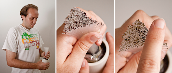 Figure 1 shows our prototype, which consists of a bundle of optical fibers held together by a hand piece. The top ends of the optical fibers are touch-sensitive. Functionally, the device is therefore equivalent to a touchpad: it offers a two-dimensional array of touch-sensitive elements. Unlike a regular touchpad, however, each sensor element has been extended using an optical fiber. Since fibers can be bent, this allows users to deform the “touchpad” or break it apart into multiple touch-sensitive elements (e.g., Figure 2).